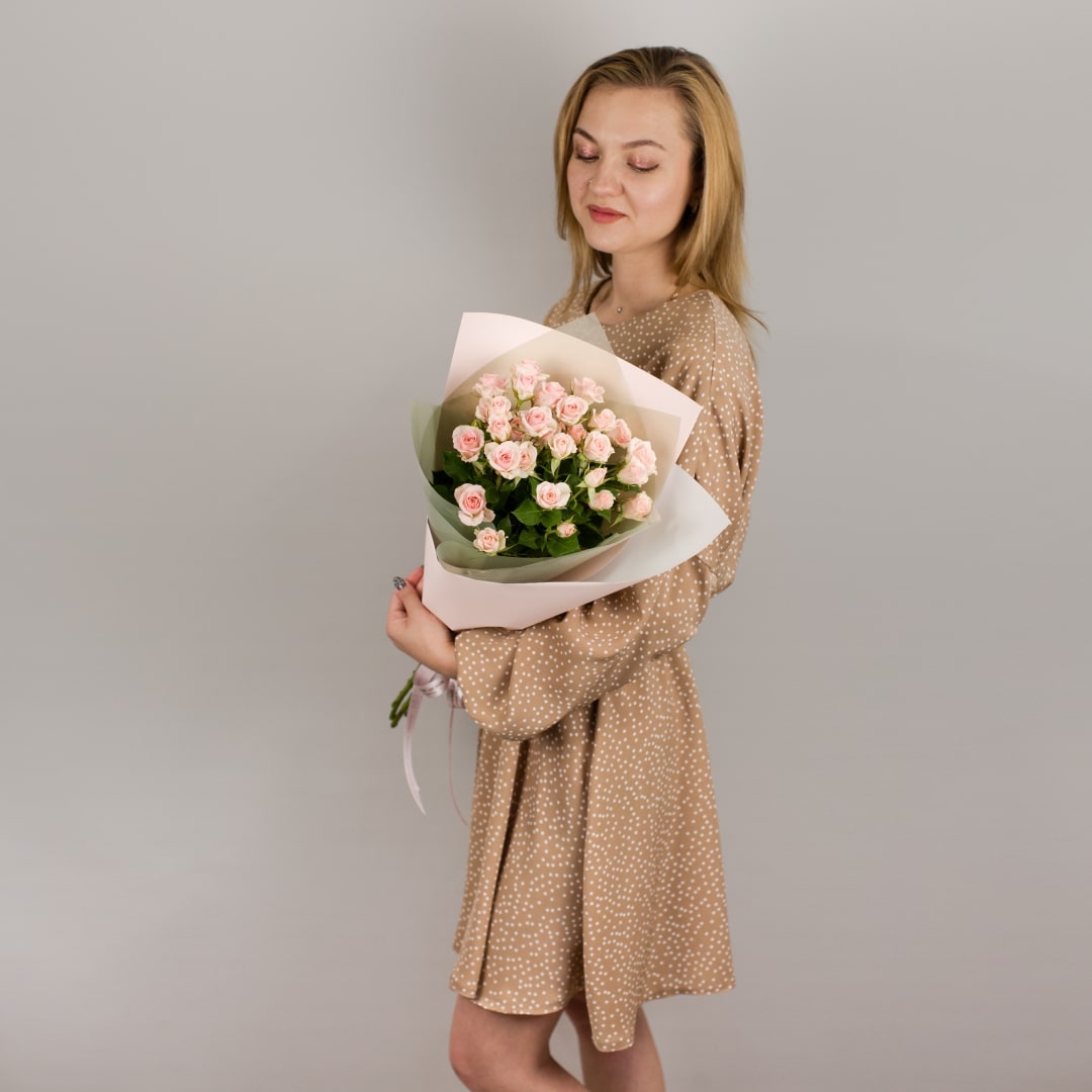 Букет из кустовых пионовидных роз кремового цвета арт. 47529