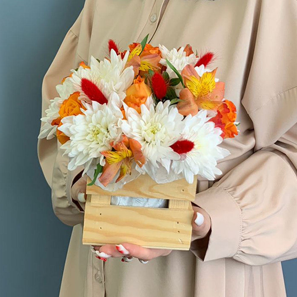 Чтобы букет радовал дольше, достаточно слегка увлажнять губку, сохраняя цветы свежими. Хризантемы и альстромерии славятся стойкостью, поэтому композиция будет сохранять красоту несколько дней. Закажите цветы в ящике с быстрой доставкой и порадуйте тех, кто для вас дорог.